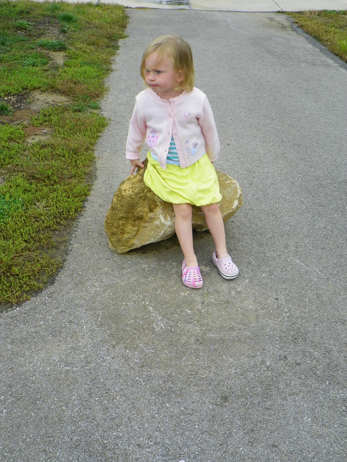 We found another park to visit on this cool, foggy day. I think we are going to run out of nice days before we run out of parks! Notice the fashion statment with the shoes. I also let her pick out her own outfits to wear which explains the neon green bubble skirt and pink sweater.