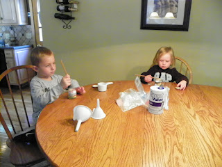 After a few hours at the park we came home and did crafts. We had made bat pictures at the library that morning at story hour and this craft was sand art. Instead of using sand I used food coloring to dye salt different colors and it worked well.