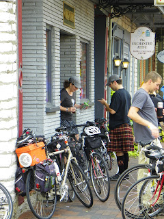 a pub crawl on bicycles and kilts. I took this one just because of the kilts.