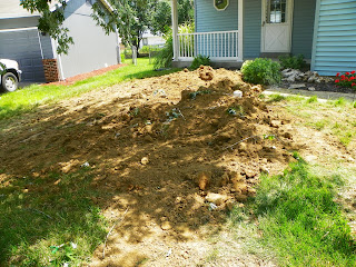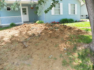 this is what the yard looked like after the sewer repair was done. even through i sold my house at the end of May, I'm still responsible for this repair. The plumber has finished the job, just waiting for the ground to settle so the sidewalk and sod can be installed. The poor new owner had a 3 foot pile of dirt in front of her front porch since July.