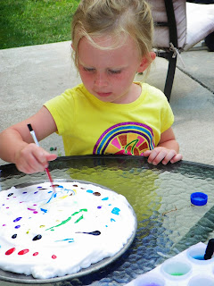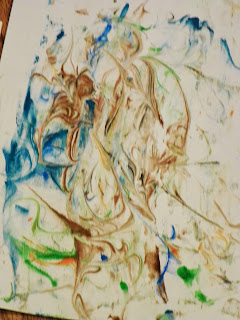 we did a new craft, taking shaving cream, dribbling paint on the surface