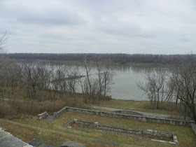 The fort was established in 1805, fifteen miles north of St Louis. It was a trading post and Lewis and Clark camped at this site before their voyage to explore the west. It was the first American military outpost. The original fort was build below the bluffs and if still standing would be in the middle of the river. The second fort was built on top of the bluffs and has since disappeared. The above view is from the top of the staircase.