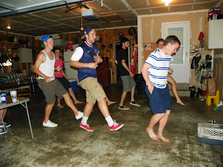 the soccer boys dancing in the garage, Dean from England, Noah from Texas and Jonny from Scotland. They had the best time dancing and they are all pretty good. Noah taught everyone the Texas 2 stop. Jonny lives with my daughter's family during the summer so he can play soccer for Tony Glavin's soccer team. These kids were so entertaining this summer!
