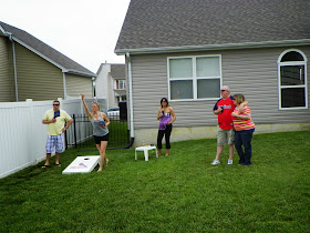 guest playing "corn hole" grown up version of beanbag toss
