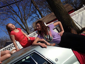 the kids and cousins posing on grandpa's beater