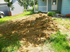this is what the yard looked like after the sewer repair was done. even through i sold my house at the end of May, I'm still responsible for this repair. The plumber has finished the job, just waiting for the ground to settle so the sidewalk and sod can be installed. The poor new owner had a 3 foot pile of dirt in front of her front porch since July.