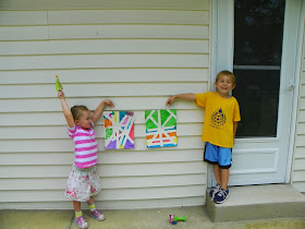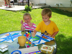 Since I don't work in the summer, we have reinstated craft days with grandma. This afternoon we used painters tape to tape off cardstock then painted with tempera paint