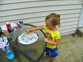 we did a new craft, taking shaving cream, dribbling paint on the surface