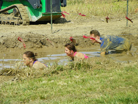 I missed the girls going thru the finish line the first time, I lost sight of them, so I made them go thru again! Think I'll try this next year, minus the running and the obstacles except for the mud pit, think that would be fun. B finished 5 minutes faster than the 70 year that ran it