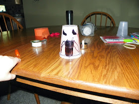 Thank goodness for pinterest! Grandma gets some crafty ideas from it. Today we took plastic cups, drew a jack o lantern face on it with Sharpies