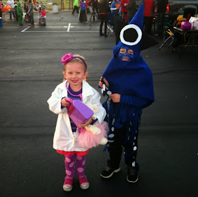 Doc McStuffin and a giant squid. Mr. D decided that grandma's so good with the sewing machine so this year he requested a giant squid costume, complete with tentacles and suckers.