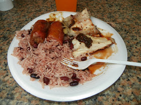 One of the things I like to do when visiting a new place is try different foods. On this plate was callaloo, ackee and salt fish and bean stew. Callaloo (at the 9:00 position) tasted like what we here in the States call collard greens. Ackee and saltfish (11:00 position) tasted like potatoes with fish) and the bean salad (1:00 position) was different types of beans served hot with a dressing. All was tasty.