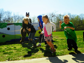 L and I spent a beautiful Saturday morning at the park watching the Monkey Tales actors in "The boy who snared the sun"
